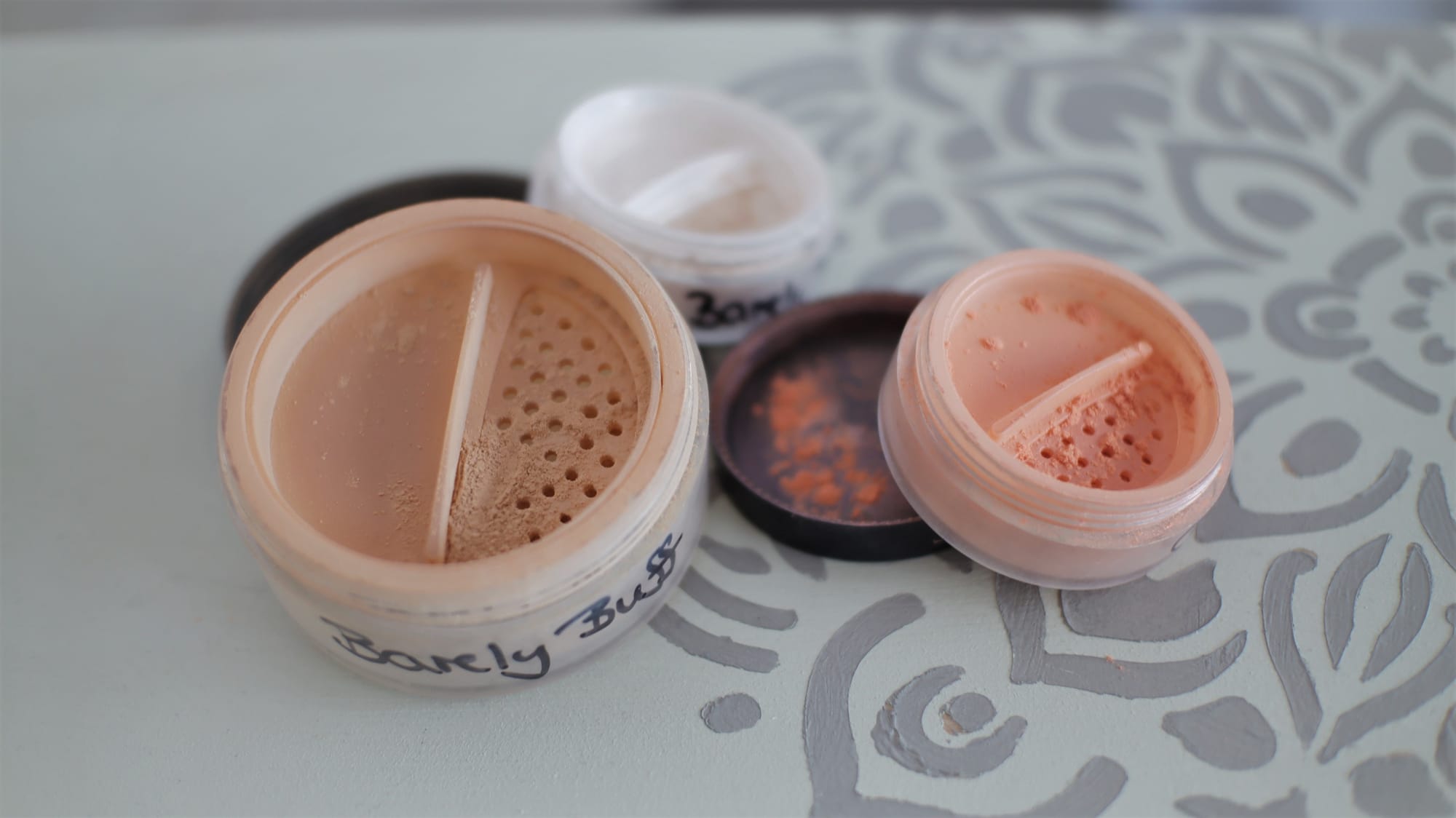 Lily Lolo verzichtet komplett auf Bismuth-Oxychlorid in seinen Formulierungen und liefert einen schönen "Bausatz" an unterschiedlichen Farbnuancen. Um die optimale Nuance für seine eigene Hautfarbe zu finden, sind die losen Puder-Foundations sehr gut zu mischen, was ich mir gerne zu Nutze mache: Je nach Jahreszeit mische ich „Barely Buff“ und „Popcorn“ im für mich passenden Verhältnis. [Die Schriftzüge auf den Puder-Dosen habe ich hinzugefügt, damit ich sie nicht verwechsle 😉]